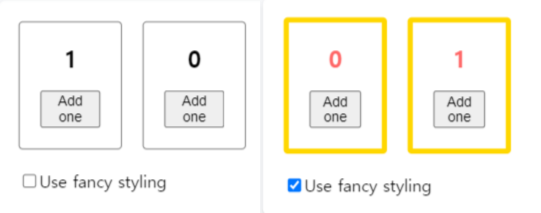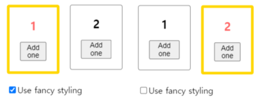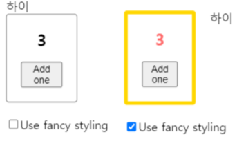 isFancy의 값에 따라, css가 다르게 렌더링 되는 함수인데 다르게 렌더링 되더라도 상태는 유지된다.
