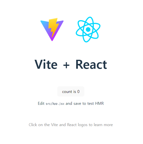 이런 페이지가 나온다. 나는 vite를 사용 중이기에 CRA(createReactApp)과는 조금 다르다.
