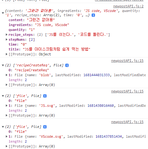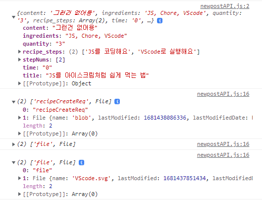 복잡하게 stepNums를 하나의 상태로 관리할 필요없이, axios 요청이 일어날 newpostAPI에서 stepNums를 미리 선언해주고, 파일이 담겼고 0이 아니라면 추가하기로 했다.